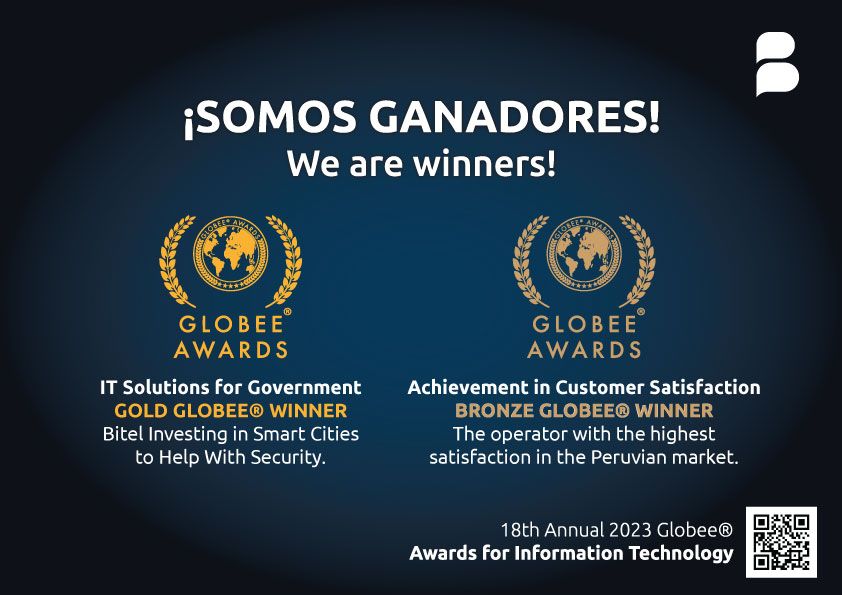 Lima, 09 de junio de 2023 - En la 18va edición anual de los premios Globee Awards, Bitel logró el primer puesto en la categoría “Mejor Solución de TI para el gobierno” gracias al proyecto “Smart city”, en el distrito de Moche.