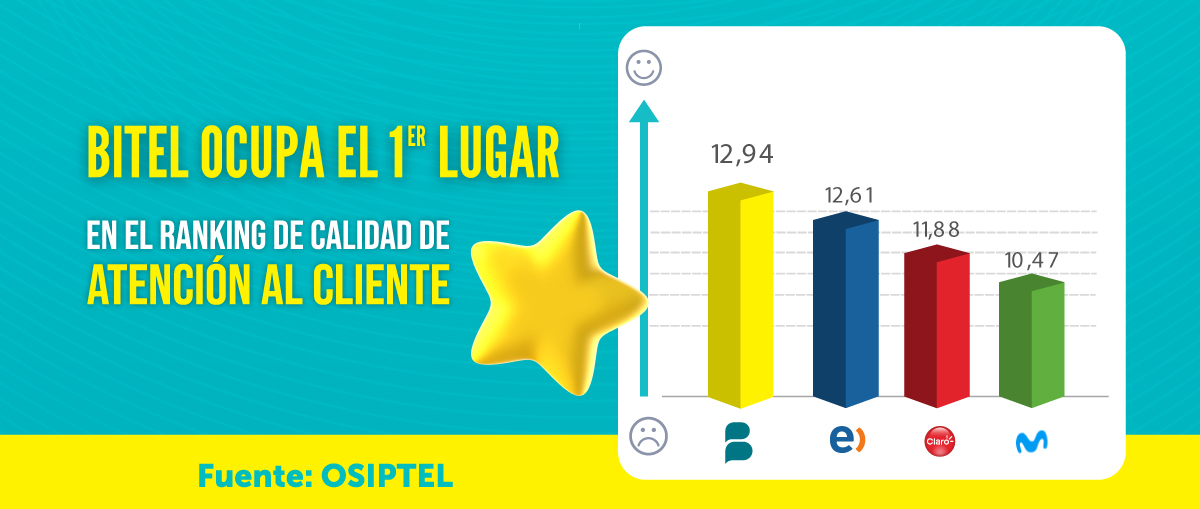 - Bitel lidera el ranking de empresas operadoras de servicio público móvil con mejor calidad de atención a los usuarios.